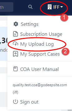On the homepage of the Insighter portal, users can click the “Account” button, then click “My Upload Log” to review all the process status of COA documents they uploaded before: