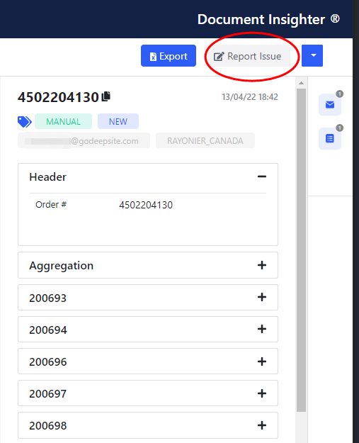 Report issue manually by clicking the “Report Issue” button. Pick an issue category, like “IPC/Extraction” and leave your comment in the dialog.