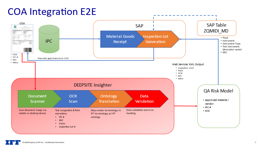 - Unit Validation for Quantitative MICs For the Test Parameters, vendors may use different unit to show the test result, the system will check the consistency with IFF MIC Master Data. If it is not identical, an er ror message like “UOM ‘mg’ not match ‘kg’” will be posted to SAP together with the extraction result.