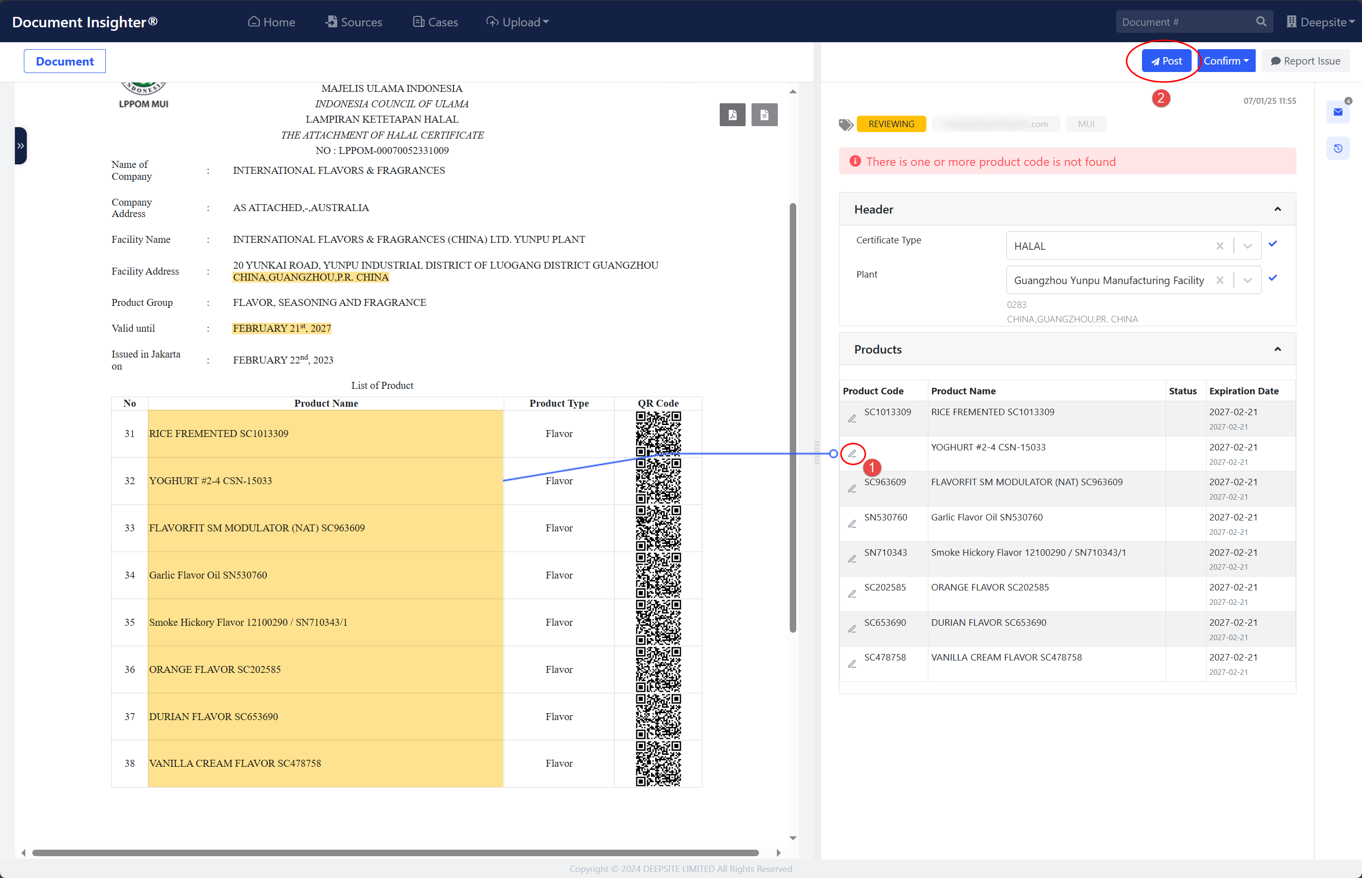 If user manually edit the product code, user need to click the “Post” button to post the document to IFF SharePoint for the edit case.